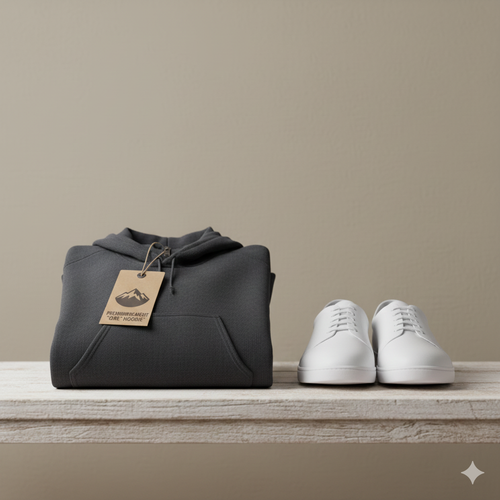 A structural, oversized hoodie made from 450GSM French Terry cotton. It maintains its shape for a high-end streetwear silhouette.